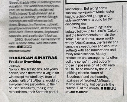 Filed under: 1992-1993 I've Seen Everything, Press | Tags: Album Reviews, Anagrams, Concert, Gig, I've Seen Everything, Press, Select Magazine, Trashcan Sinatras