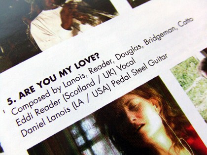 Track 5 on CD1, ‘Are You My Love’ is sung by Eddi Reader. A short track with haunting vocals, it was co-written by John Douglas and Eddi and features some fine pedal steel by Daniel Lanois (U2, Peter Gabriel etc).