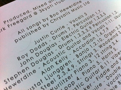 Well, on Boo’s last studio release, God Bless The Pretty Things, both John and Stephen Douglas appeared on half-a-dozen songs or so. John on electric guitar and Stephen on drums and percussion. The album shuffles along at a steady pace with acoustic finger-picking taking the lead on most songs over accordion, banjo, double bass and strings. Track 5, Rags, with Del Amitri’s Justin Currie, is a particular favourite.