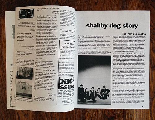 Issue number 8 from the fall of 1991, included a single page article on the Trashcans’ and features a phone call interview with Paul Livingston and Australian contributing editor, Brian May.