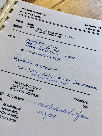 This would have been distributed to people involved in the tour and contains all the relevant information for the tour including hotels, tour companies, crew members, travel arrangements, promoters and venues.