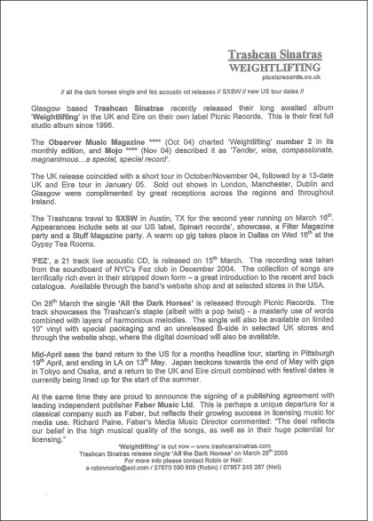 Filed under: 2004-2006 Weightlifting | Tags: CD, Hard-to-Find, Import, Music, Promo, Trashcan Sinatras