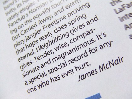 Another album, another magazine, another review – Weightlifting + Mojo = 4 stars. Back to health indeed.