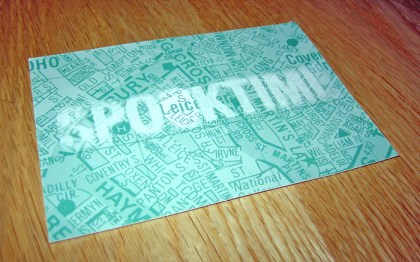 Small A6 promo postcard for the release of the Trashcans’ controversial short film ‘Spooktime’.